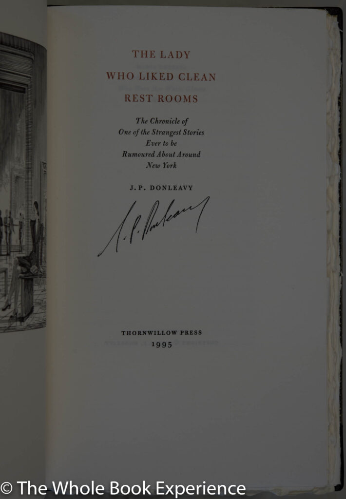 - The Lady Who Liked Clean Restrooms, by J. P. Donleavy; Published by Thornwillow Press