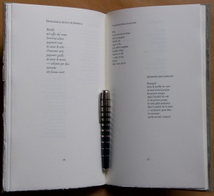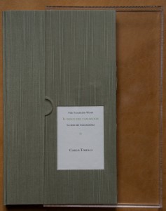 From what I could see from the Barbarian Press bibliography, Hoi Barbaroi, this is the fourth or fifth book they have designed for Toselli and Le Grazie. I was lucky enough to see a copy when I visited the press in 2008, fell in love with it, and added it to my library.