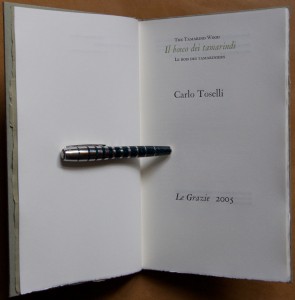 I don’t know much about Carlo Toselli and couldn’t find much to help me on the internet. What I do know comes from his book of poems entitled Il Bosco dei tamarindi/The Tamarind Wood/Le Bois des Tamariniers published by Le Grazie in 2005.