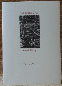 I’m a sucker for fine press books by authors I like and admire. So I’ve always wanted to check out the Berry titles published by Larkspur Press. Located in Monterey, they ARE neighbors of Berry, situated across the river (or is it a branch?) from his Kentucky farm.