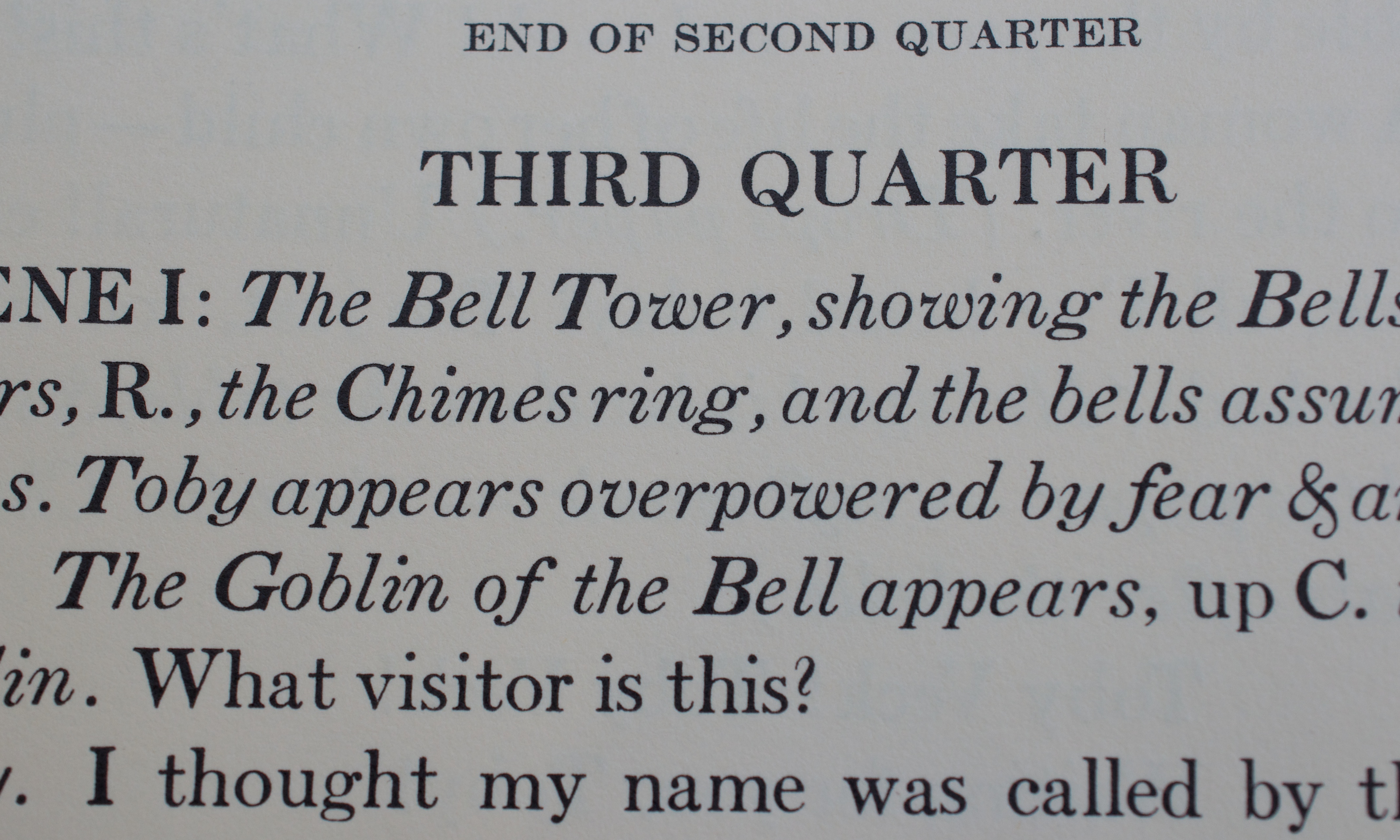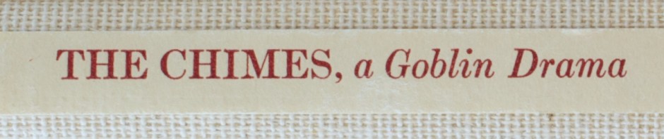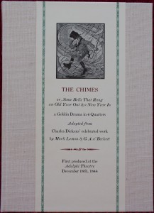 The Chimes: or, Some Bells That Rang an Old Year Out & a New Year In, a Goblin Drama in 4 Quarters; Adapted from Charles Dickens’ celebrated work by Mark Lemon & G. A. a’Beckett; First produced at the Aldelphi Theatre December 18th, 1844.