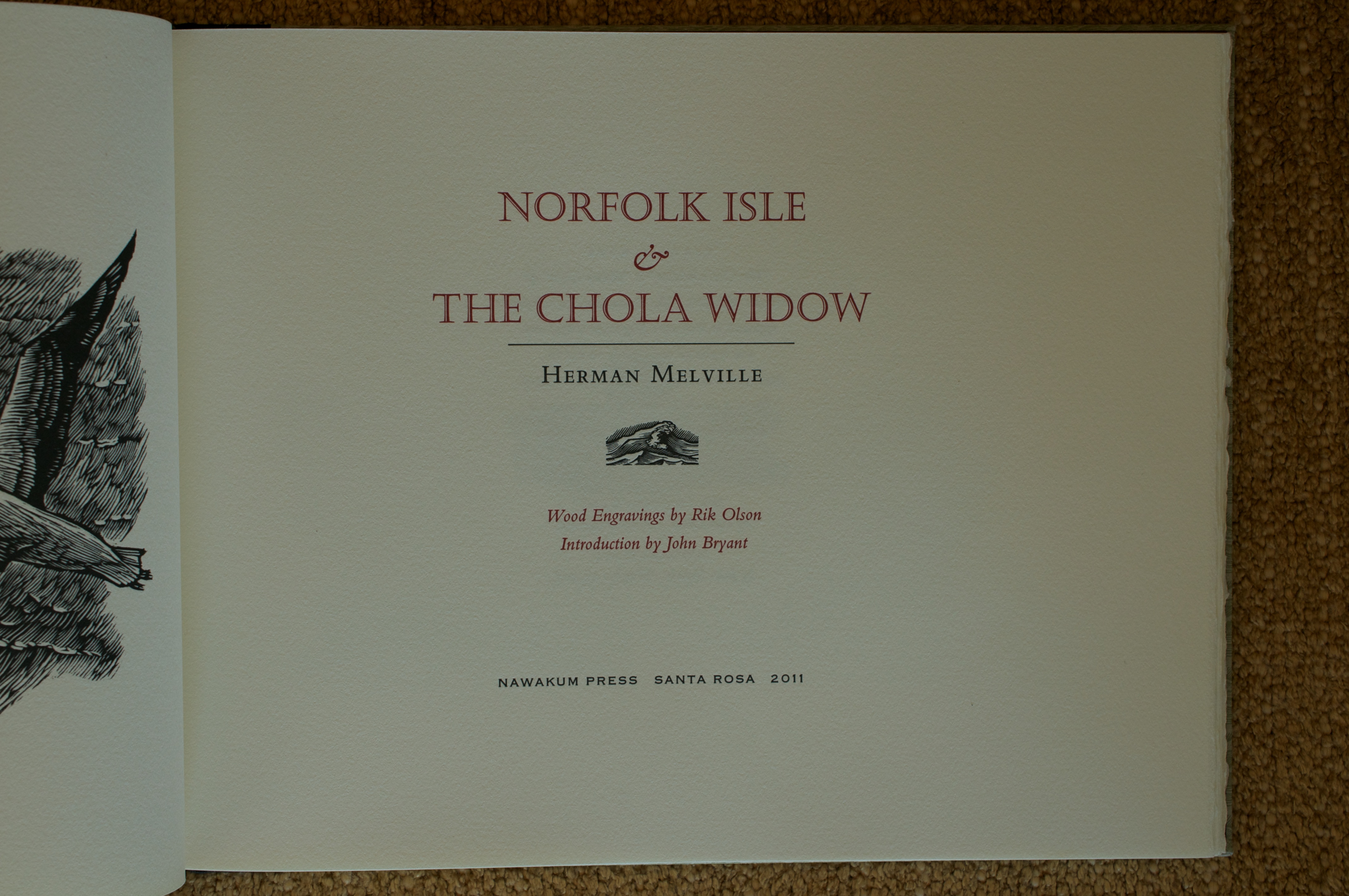 I will definitely be seeking out more of Melville’s other works. If I can find them in a fine press edition that is anything close to this Nawakum Press edition, so much the better for the Whole Book Experience.