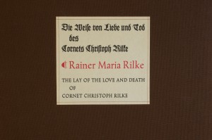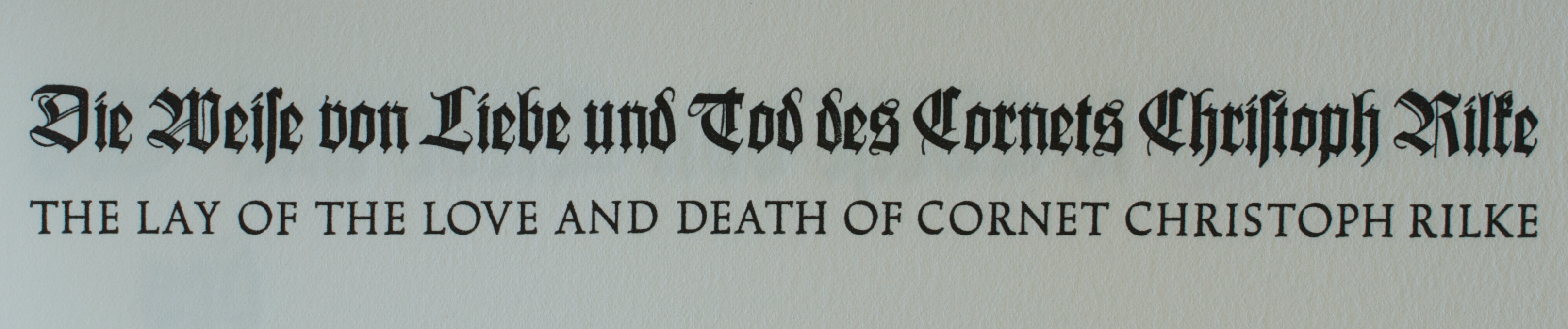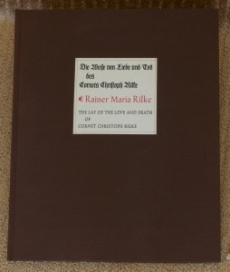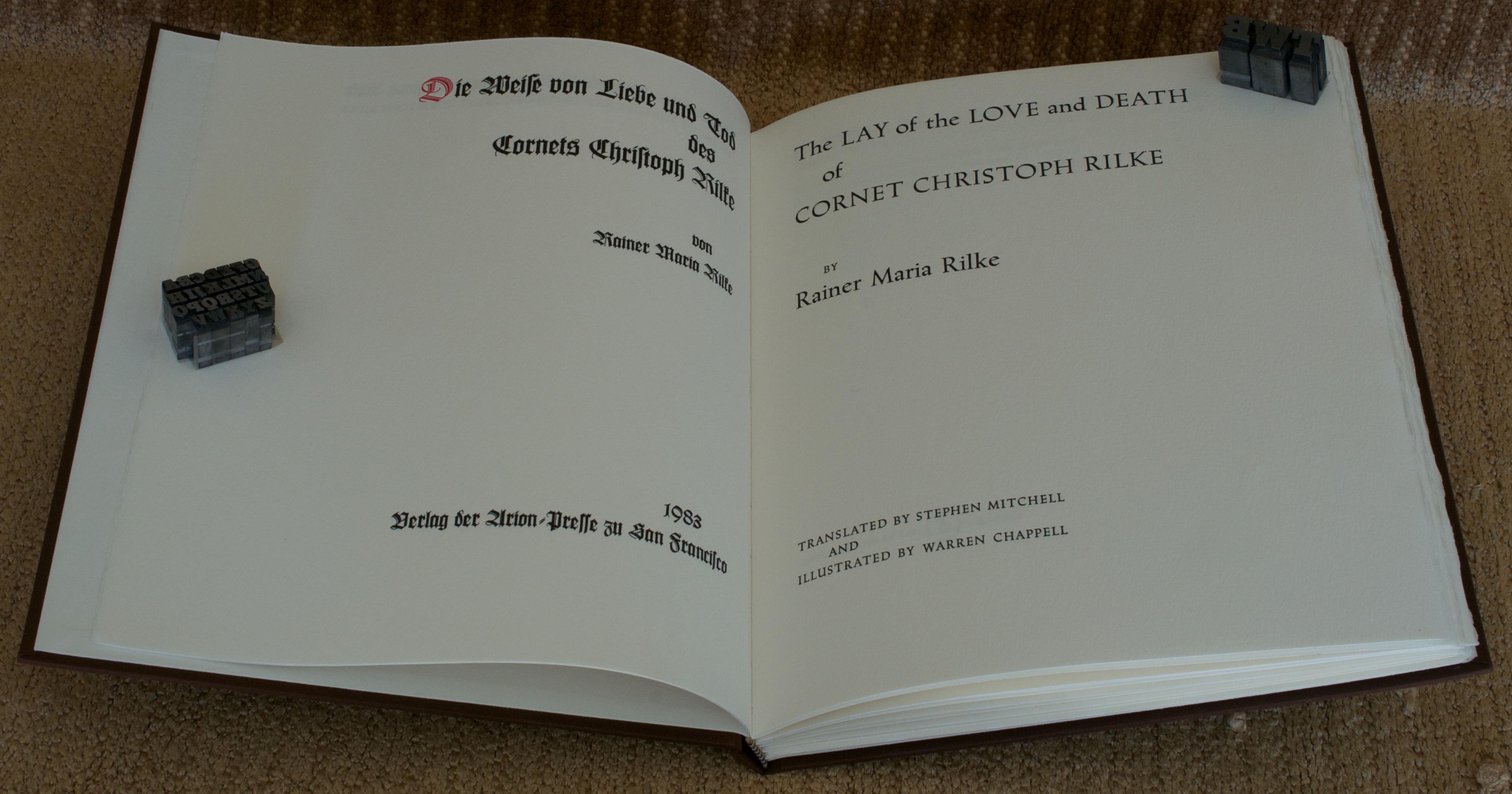 The Lay of the Love and Death of Cornet Christoph Rilke is the earliest Arion Press book in my library, or that I have reviewed for The Whole Book Experience. It was the 12th book from the Press and is certainly a gem in their early output.