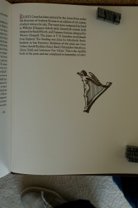 any one of them again if a private press decided to put out a fine edition. His new translation of the Iliad? Yes, please. His version of Whitman’s Song of Myself? Pretty Please! More of his Rilke? Anytime. The Gospel According to Jesus? Bring it! In fact, I think his Iliad would fit in nicely with the wonderful Arion Press Don Quixote translated by Edith Grossman. I’m not knocking the old, classic translations of essential world literature, and I get the whole public domain copyright issue, but it is nice to see a new translation make it through a private press once in a while.
