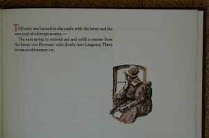 Interestingly, Warren Chappell not only did the illustrations for this edition but also had a hand in the design of the Trajanus typeface. He travelled to Germany before World War II to work at the Stempel Type Foundry but had to return when the war broke out. His illustration style works really well with this edition of The Lay of the Love and Death of Cornet Christoph Rilke. I say “style”