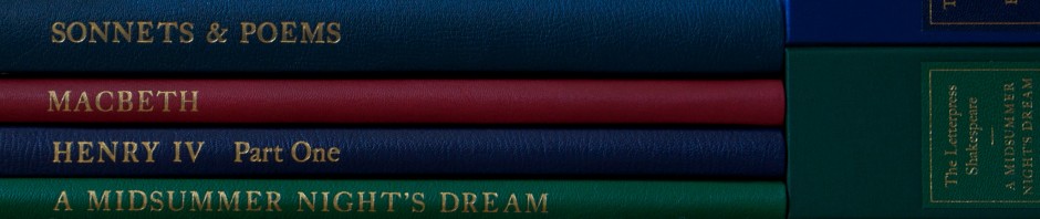I recently got some correspondence from the Folio Society indicating they were planning to complete their Letterpress Shakespeare series in 2014. The series began in 2005 with Hamlet and is now finishing up with the final six volumes including Pericles, Cymbeline, The Two Noble Kinsmen, and Henry VI. A piece of ephemera was included in the mailing that is limited to 250 copies, so I suspect that means that less than that number of Shakespeare lovers have collected the whole series. The edition size they finally settled on after some experiments early on was 1000. They have typically released these in groups of three but want to be done in time to celebrate the Bard’s 450th birthday in April 2014. I think my credit card just melted in my wallet…but this series has tied up a large part of my book budget and it will be satisfying to complete it and to maybe have some money available for other discretionary book purchases.