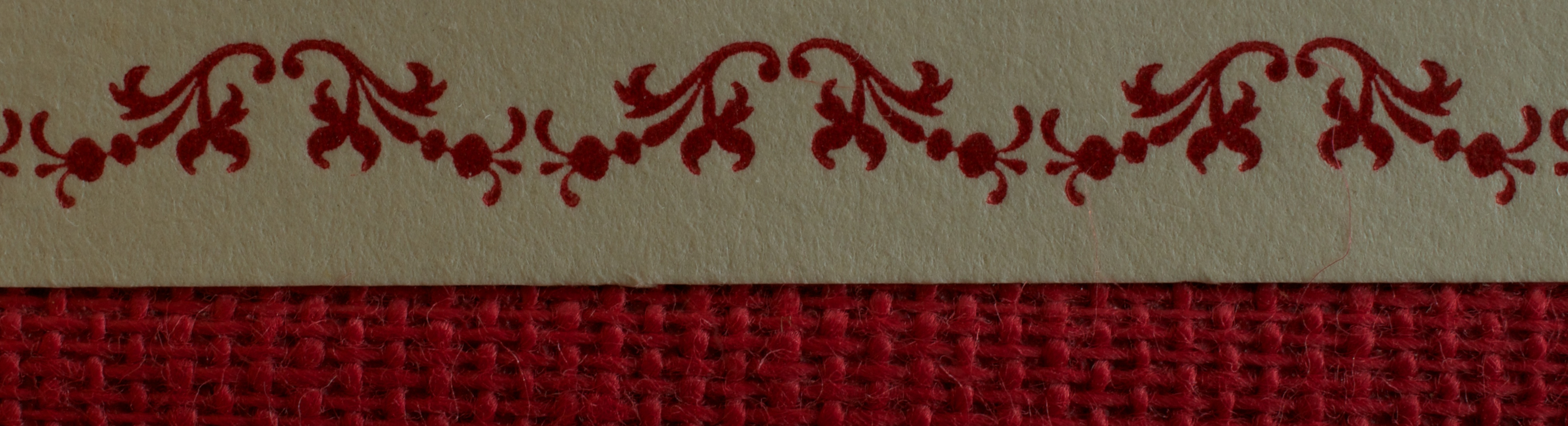The book itself is beautiful to hold and to behold. I especially like the paper title label on the front cover that runs from top to bottom and whose creaminess creates a pleasing contrast to the red cloth binding, particularly with the addition of the red border printed along both sides of the label. The book is slip-cased in a matching cloth-covered case. Alas, it is without a spine label (a pet peeve of mine) but they make up for it by providing a ribbon that makes removing the book much easier and is elegant to boot.
