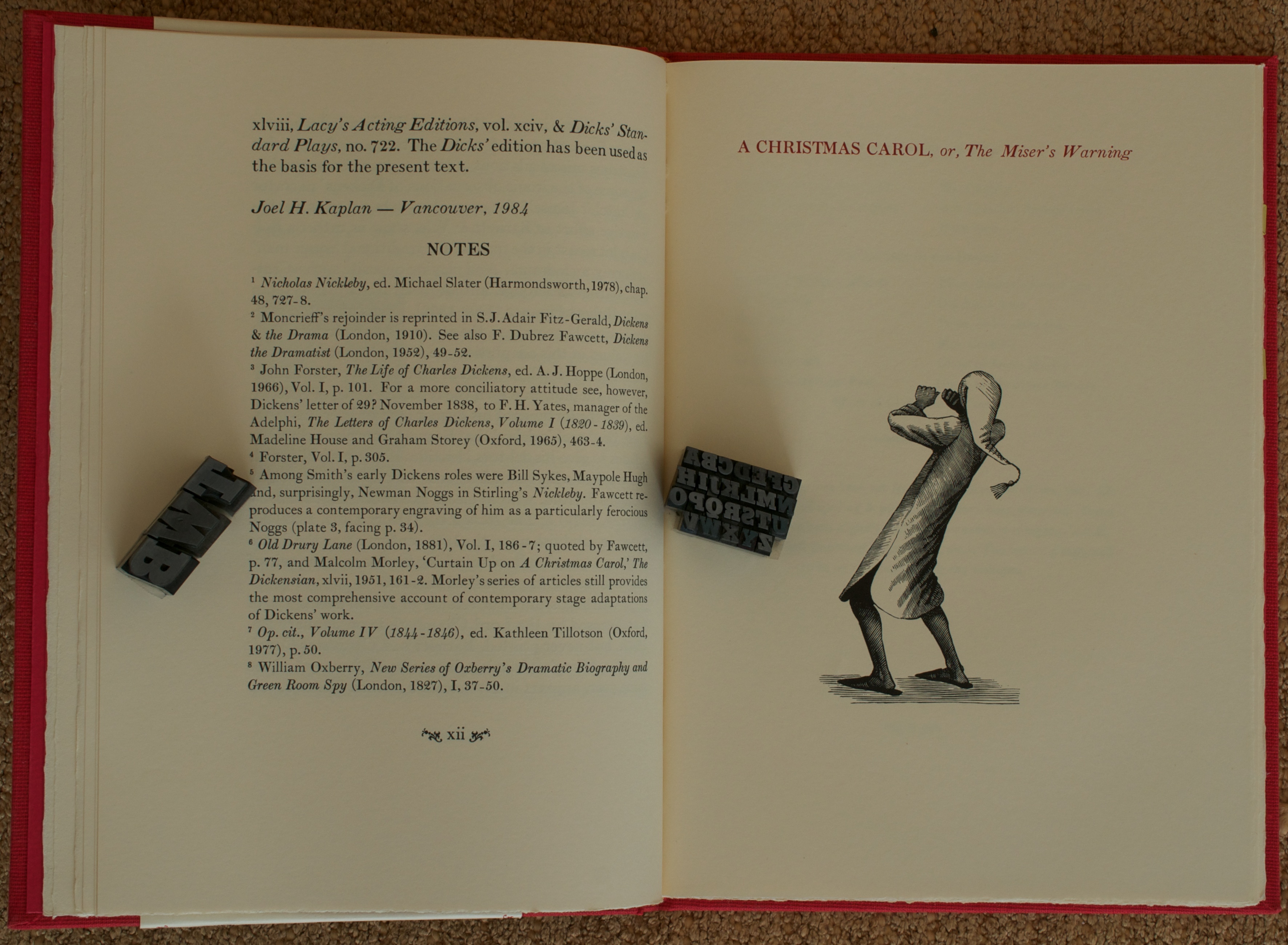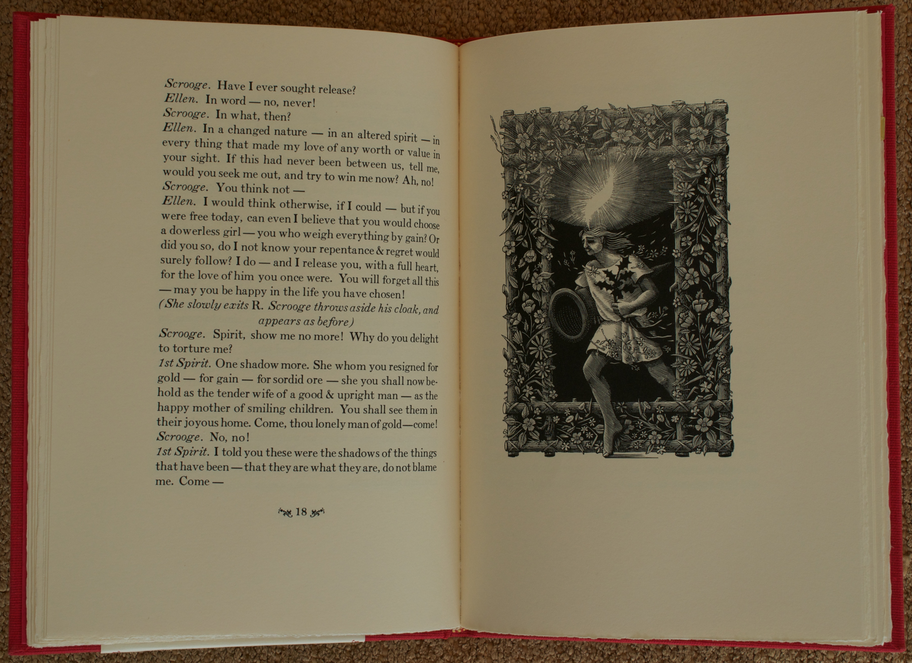 When I spoke to Crispin about A Christmas Carol, he seemed a little bit self-conscious of this book, being that it was a product of such an early stage of the press’ road to mastery. But to my eye, it’s a marvelous expression of holiday cheer and publishing. I certainly don’t see a first-timer in the printing of the illustrations by Jan, and the design of the book is simple and elegant. It’s too bad the market did not allow the press to complete their plans to publish all of Dickens’ Christmas books.