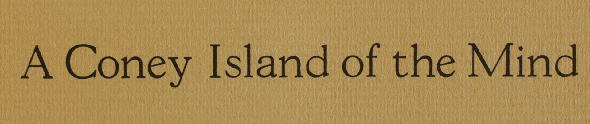 The title of this book is taken from Henry Miller’s Into the Night Life. It is used out of context but expresses the way I felt about these poems when I wrote them—as if they were, taken together, a kind of Coney Island of the mind, a kind of circus of the soul.