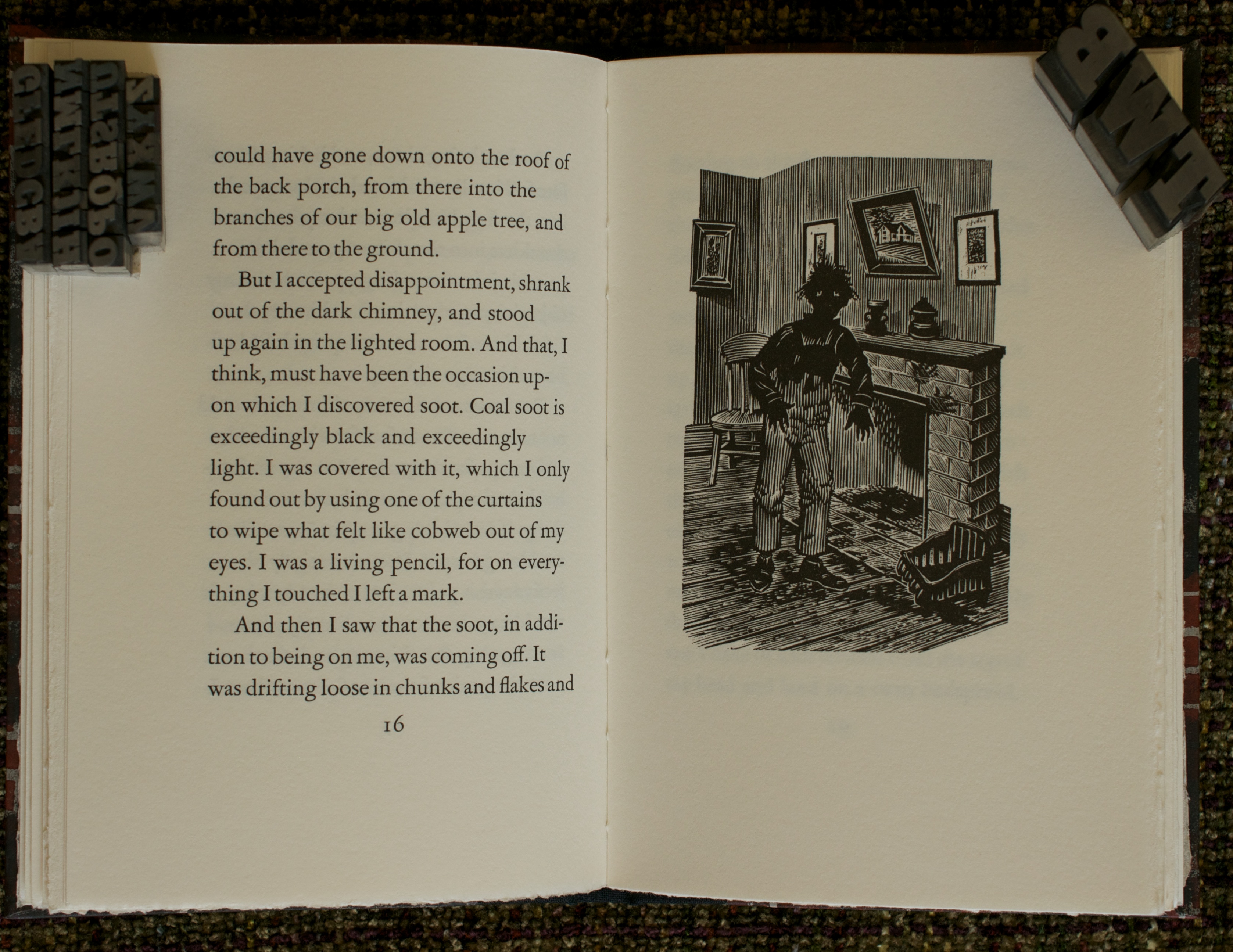 I was lucky enough to snag one of the special editions of Andy Catlett: Early Education. This state is handbound by Carolyn Whitesel using her own specially designed papers over boards. In addition, it is printed on Zerkall Book paper instead of the Mohawk Superfine used for the cloth- and paper-bound regular states. The book is signed by author and accompanied by a separate printing of the engravings signed by the artist, Wesley Bates. Definitely worth the extra cost in my book; and a bargain compared to some of the other fine press book prices out there. But I’ve never been anything but delighted by any of the different states of Larkspur Press books that I’ve been lucky enough to read and keep on my library shelves.