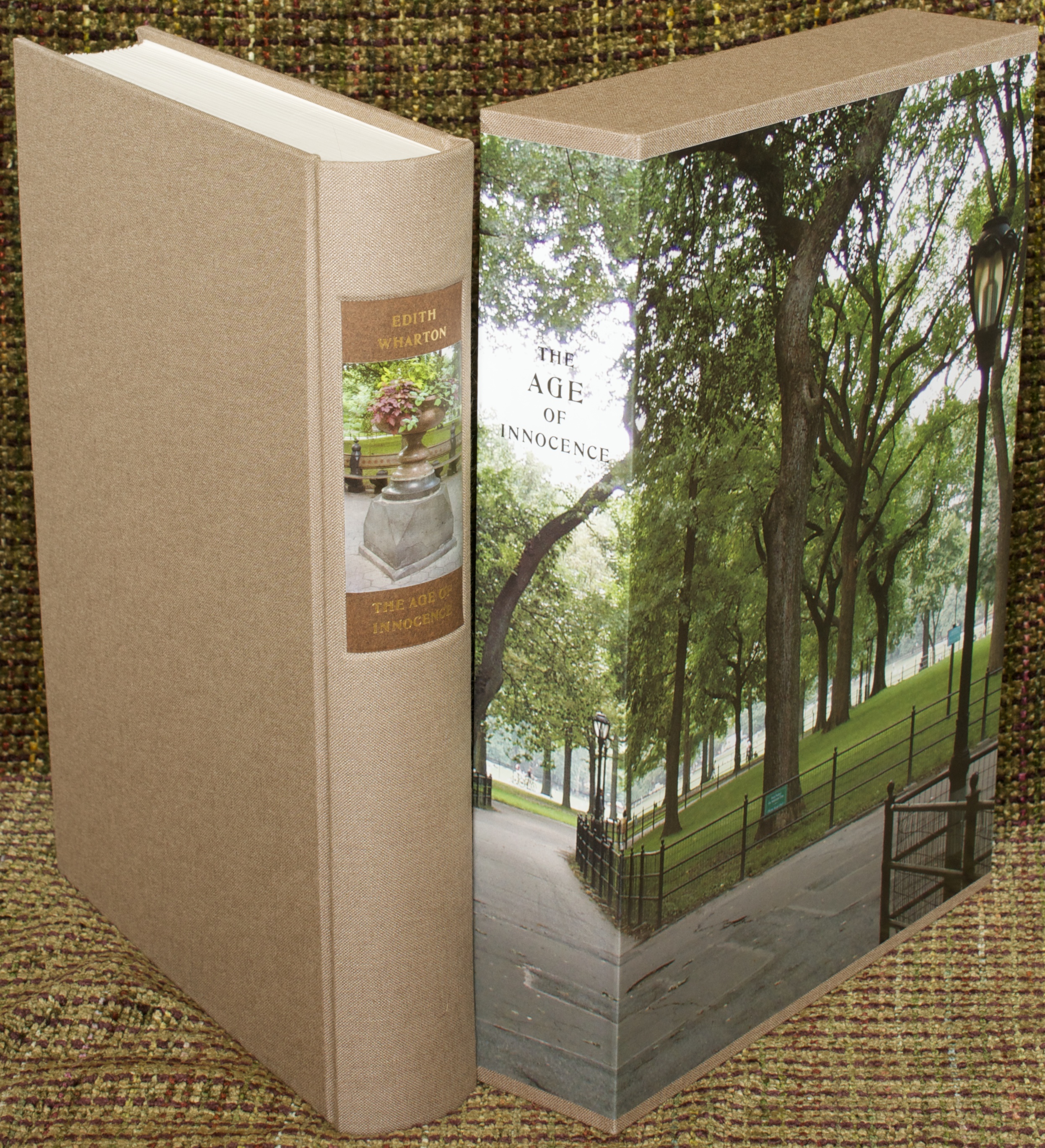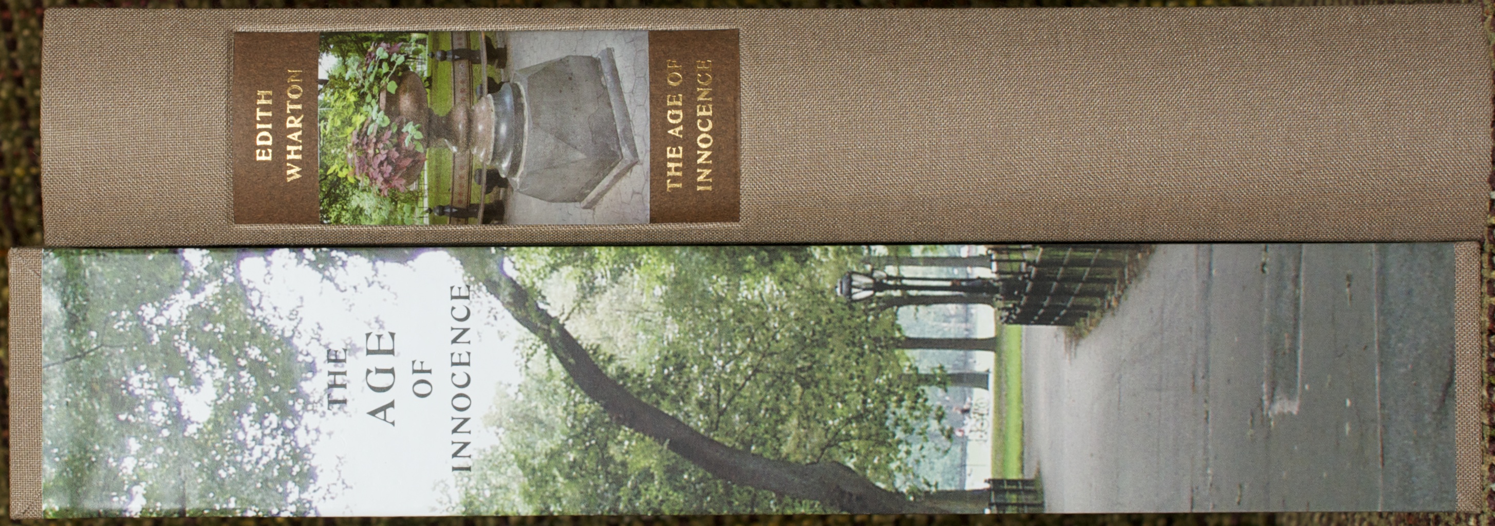 While photographs are not usually my favorite medium for book illustration, in this case I feel that Stephen Shore has captured the feel of Wharton’s New York quite remarkably. And I really like the striking photograph of central park that wraps around the slipcase for the book. I’m a big fan of slipcases for functional reasons and it is nice when some design thought is also put into the slipcase, making it an integral part