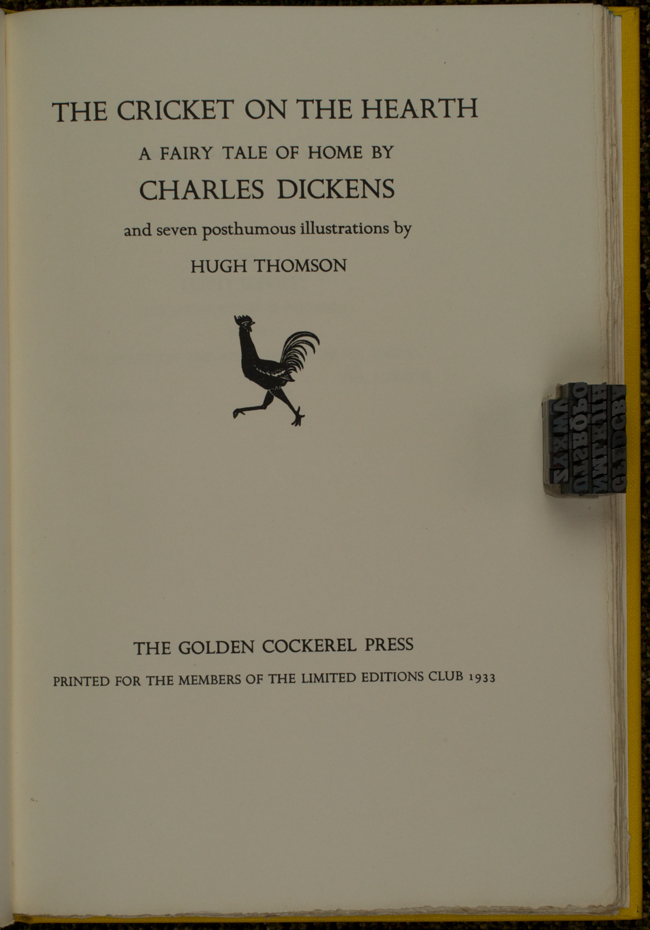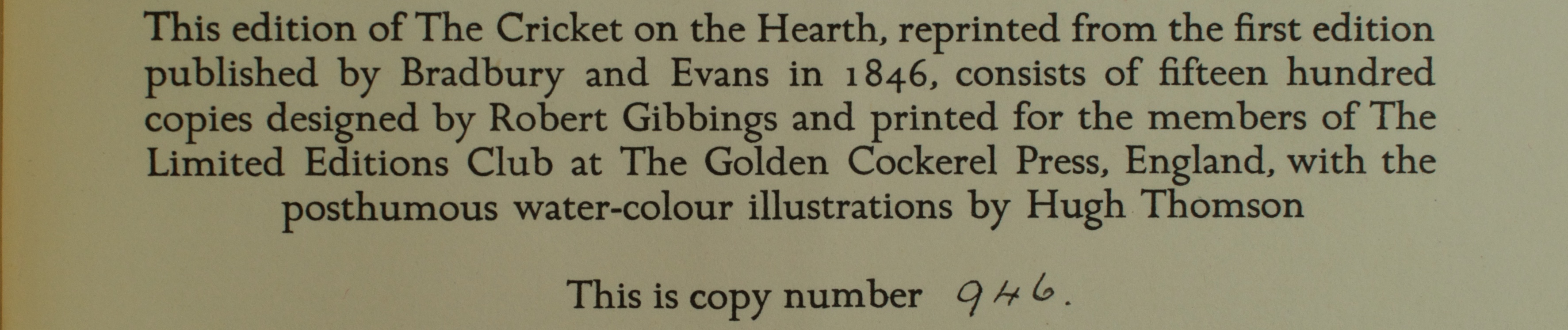 I’ve read a lot of Dickens in my life, but I believe the only one of his Christmas books that I’ve read before this review is The Chimes. I love his novels and hope to get through them all at some point in this too-short reader’s life, including the rest of his Christmas books. I have reviewed two of the stage adaptations as published by the Barbarian Press. For this year’s holiday review, through the kind loan from a fellow fine press lover, I had the opportunity to read and review the Limited Edition’s Club edition of The Cricket on the Hearth.
