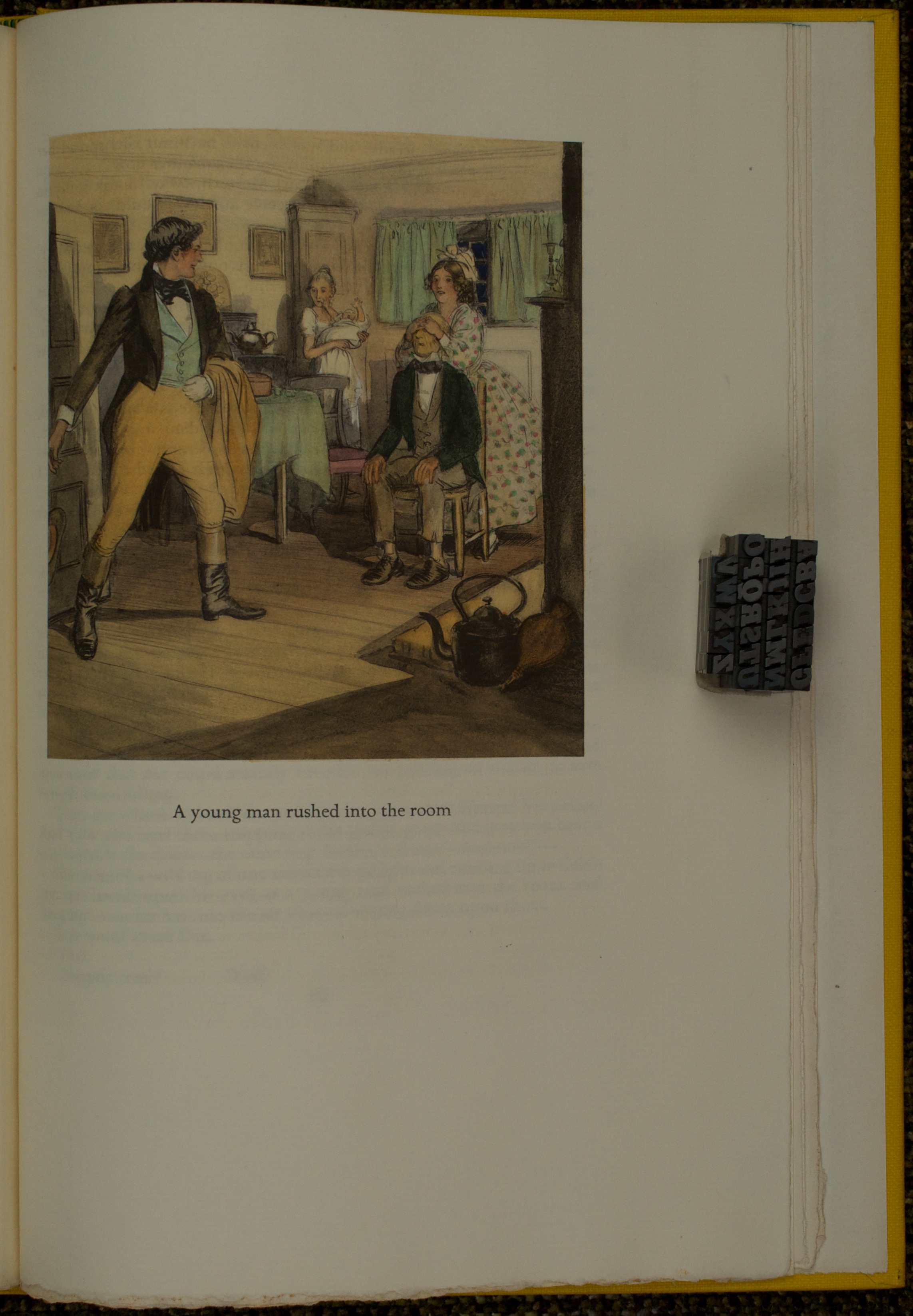 One of the glories of this edition are the illustrations by Hugh Thompson, who passed on in 1920. Originally created for a book edition that never came to fruition, Macy was only too glad to use them for a LEC edition thirteen years later. Although definitely in the style popular at the turn of the century, they are entirely fitting to the author, the story, and the edition. What more can you ask of illustrations, one might ask? It was designed, set by hand, and printed for Macy by Robert Gibbings at the illustrious Golden Cockerel Press. The type used was designed by Eric Gill exclusively for the press. Macy states in the Monthly Letter that:
