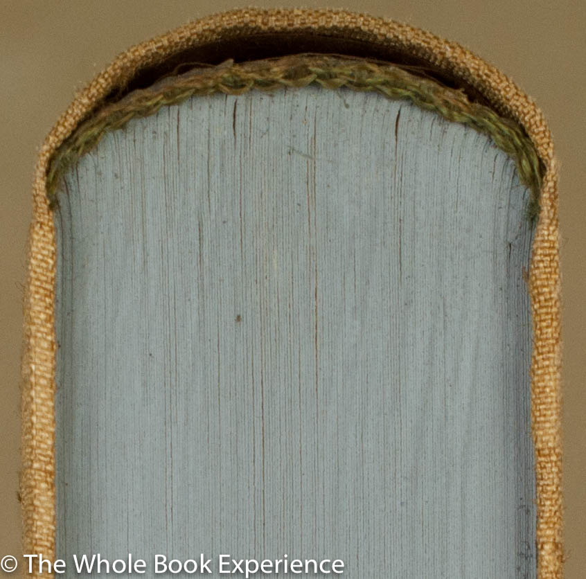 To me this book represents a kind of perfection in the simple and elegant tradition of book design; and as a result, was a pleasure to handle and read. The small size, 5 ½ by 8 ½, and flexible French silk covered boards with an elegantly rounded spine made it easy and comfortable to hold. Despite the flexible boards, my copy has held up well through its unknown 80 year life, perhaps in part due to what Macy called an “unusually heavy board” slipcase. The slipcase has suffered a bit from doing its job well but is also