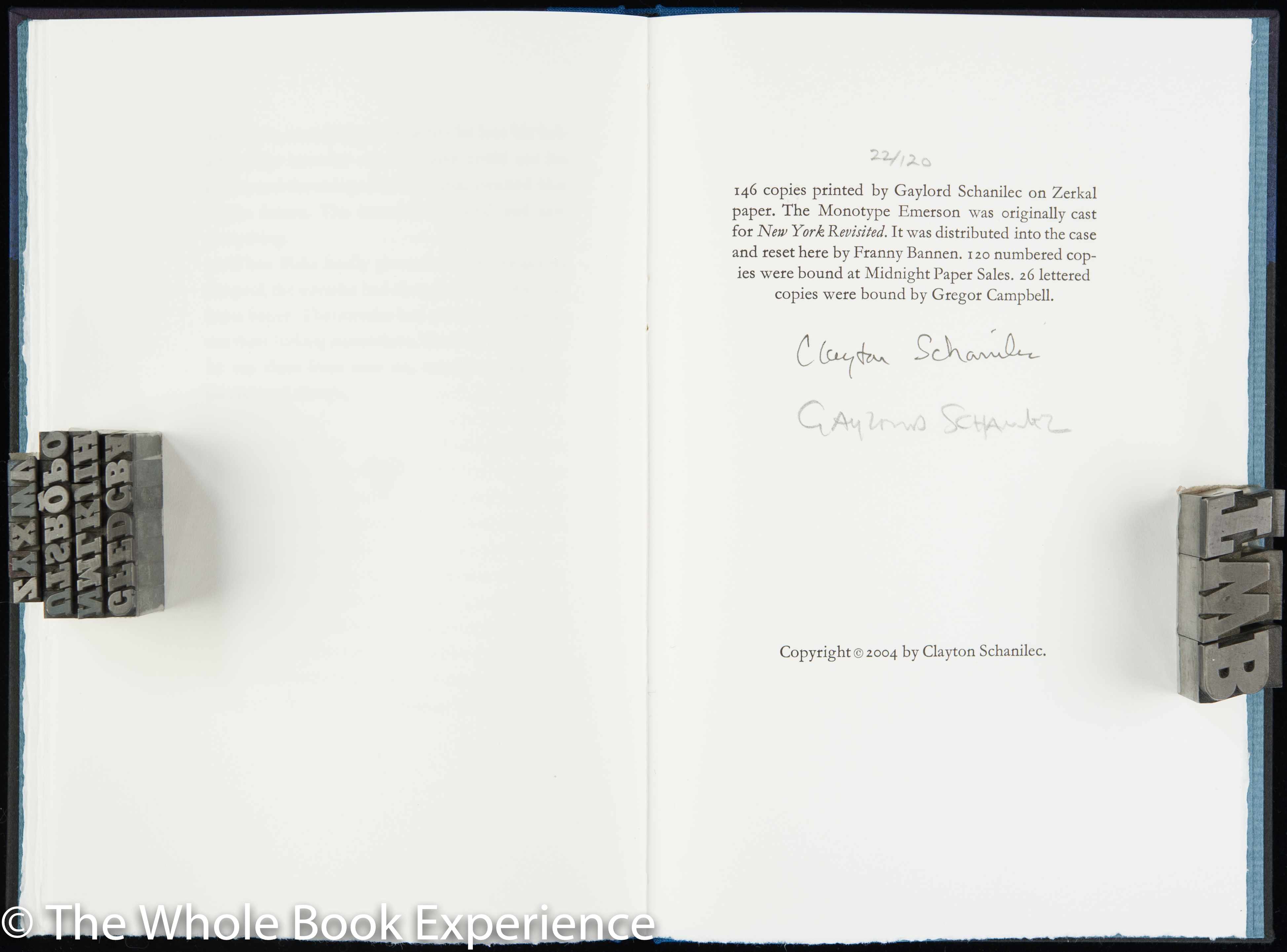 I have always been intrigued by Gaylord Schanilec’s work but have never had much opportunity to spend time with any of his books other than quick glances at CODEX. That changed when I noticed a friend’s name in a colophon to one of his books on an Oak Knoll Books mailing. Franny Bannen is not exactly a common name, and knowing that she had taken some bookmaking classes at Mill College left me little doubt that this was indeed a book that my book artist friend had a hand in. How did I not know this? I instantly tried to purchase the book only to find that in the hour or so since I got the email, it had already been snatched up. Luckily, they also had this book that Franny had worked on. We staff together at an camp for unschoolers every year and I proudly showed it to her and it was wonderful seeing her face light up when she saw it. Like seeing one of you children after a long time away. I will be having her sign my copy. What a delight for a book lover to own books whose creation your friends and family have had a hand in! My daughter had a short stint working at Arion Press and I have the joy of owning a few books with her name in the colophon.