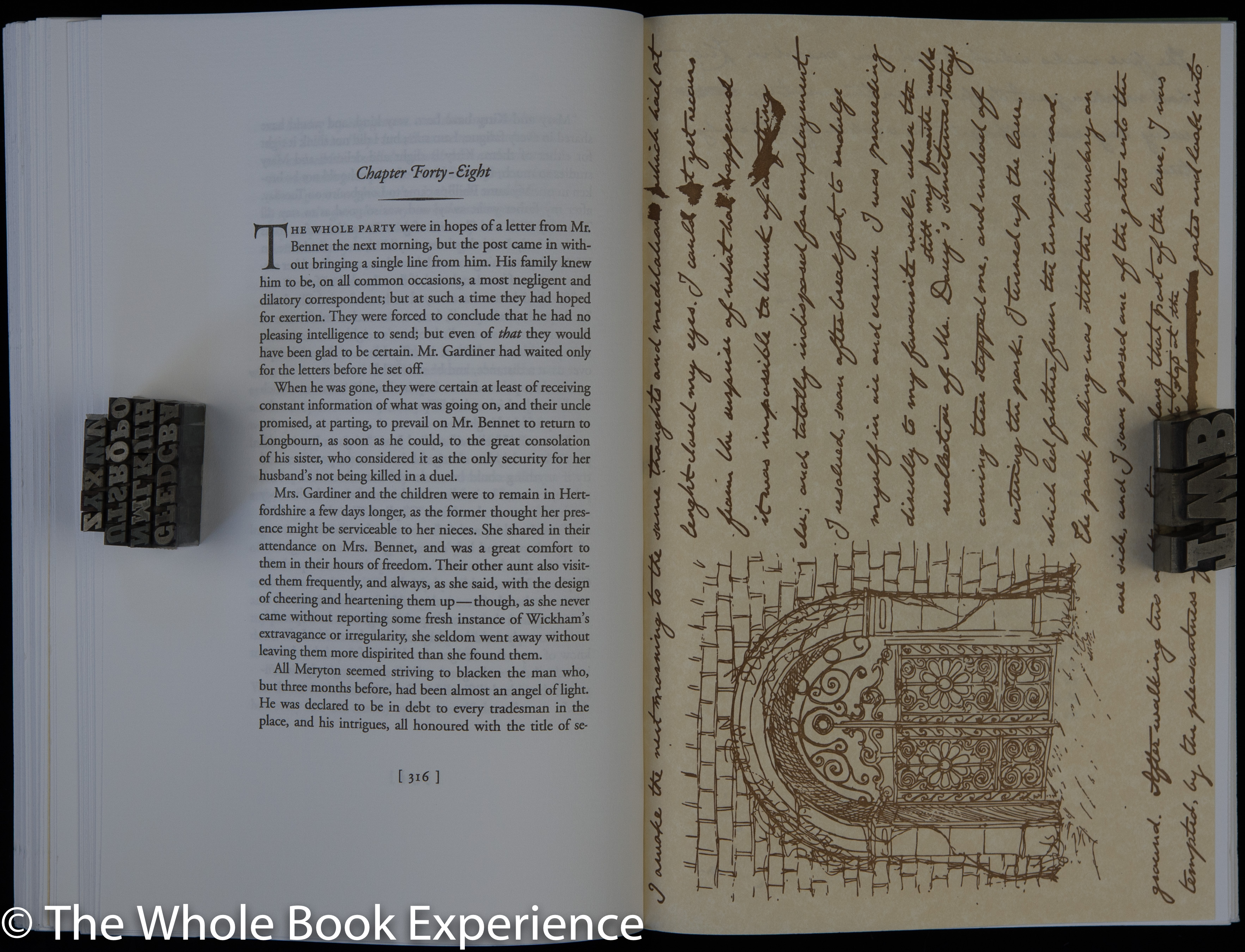 I found the Garamond type to be quite readable and the page nicely balanced with plenty of margin. The bite of the type was very firm giving it a nice depth and feel. I have to admit that I actually like when I can see the bite of the type on the backside of the page, which was only noticeable in the white spaces. It just makes me love letterpress even more. I’m not sure what paper was used. The Kickstarter mentioned a “high end laid paper” similar to that used in Austen’s time. OK. But this book nerd would like to know exactly what paper I’m turning and have it called out in the colophon.