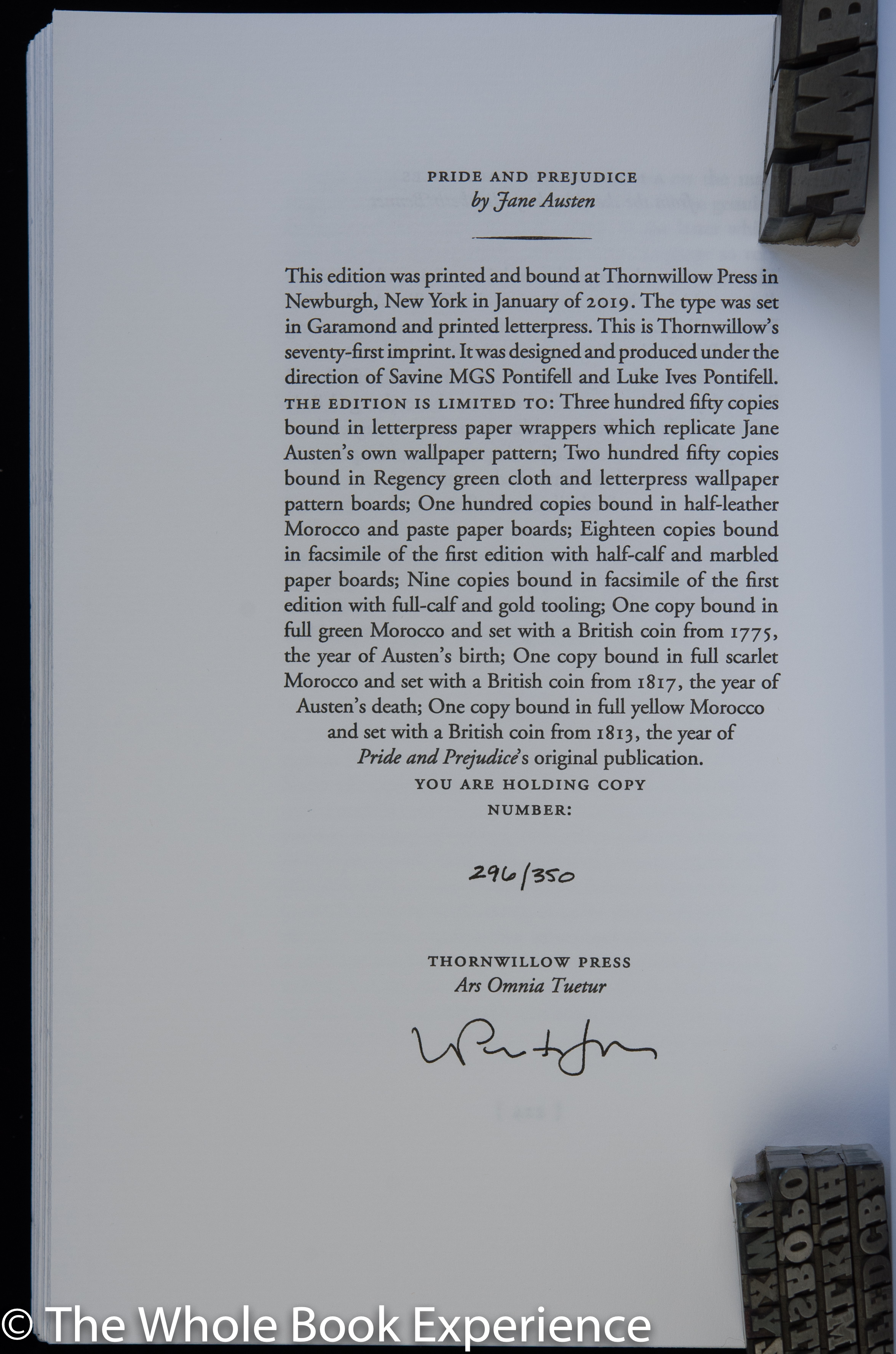 men from their actions without the balance of knowing them better. I guess that is judging a book by its cover but similarly to my experience with Jane Eyre, it is the book (object) itself that kept me going early on, as manifested in the Thornwillow edition. I’ve never been a quitter on books; I stubbornly read to the end regardless but here I had the added incentive of doing a TWBE review. And while I didn’t love the novel, at least Elizabeth and Darcy slowly redeemed themselves and I might even read another Austen, since my daughter likes some of her other novels better.