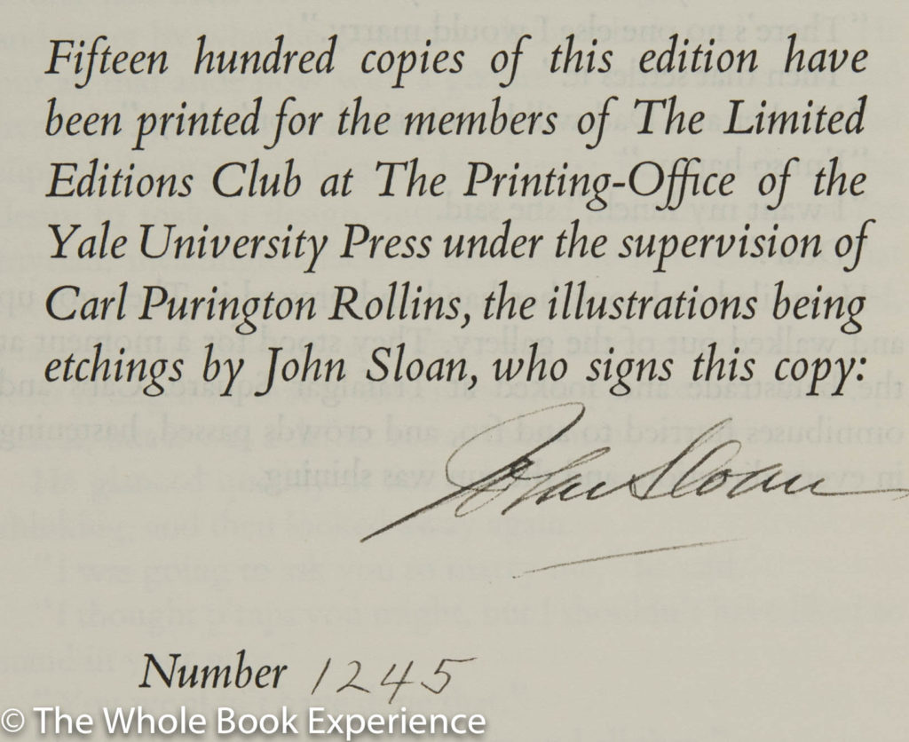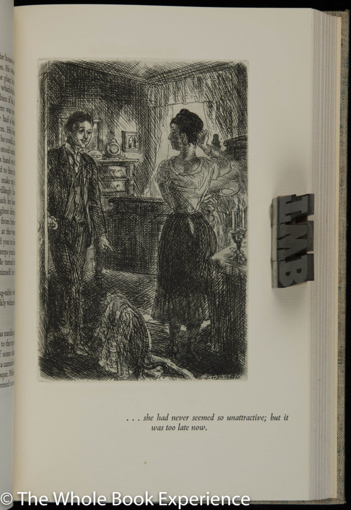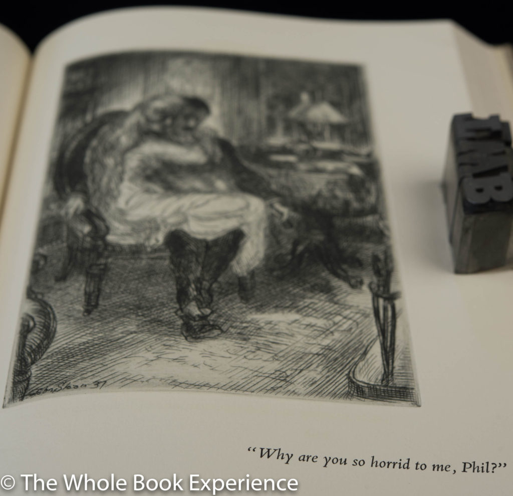 One of the most delightful things about reading this Limited Editions Club edition was the cloth used for the binding. It is so soft and sensual to the touch that it was a delight to pick up and hold each time I read. That’s especially astonishing in that the book is 82-years old. I did notice that the spine did not have that same tactile feel, as it has been exposed most