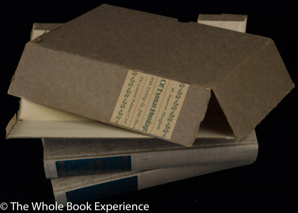 of those years (my copy does not have the glassine wrapper to protect it somewhat) and worn much smoother. So I suspect a combination of the slipcase doing its job and that the book has probably not been handled much or read before may be a prime factor in how amazing the book cloth feels. In his Monthly Letter dated February 1938, Number 105, Macy states that the cloth is an English Linen that was especially imported for the edition and that he had never seen before. He calls it coarse linen but that is not a word I would use to describe the way it feels.