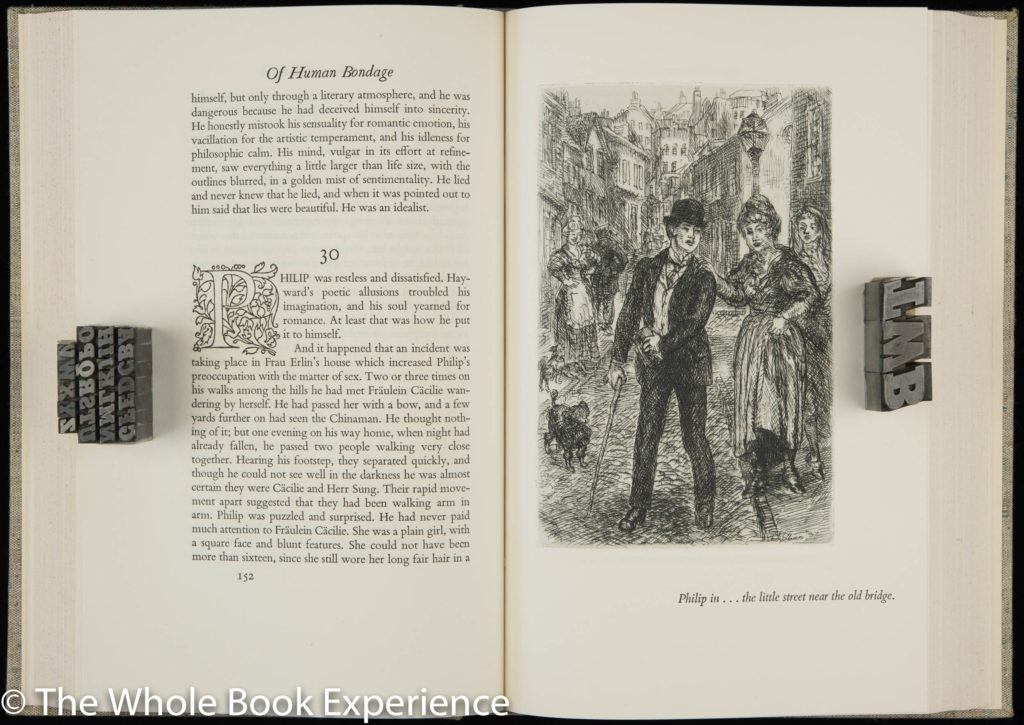 The book was designed by Carl Rollins at The Printing-Office of the Yale University Press. I really liked the fact that the book was separated into two volumes to make it more comfortable to read and handle with the care of a book lover. Again in his letter, Macy states that the 6” x 9 1/8” size chosen for the book “always gives tactile pleasure when held in the hands.” The book is indeed easy and comfortable to read and the contact with that cover linen extraordinary.
