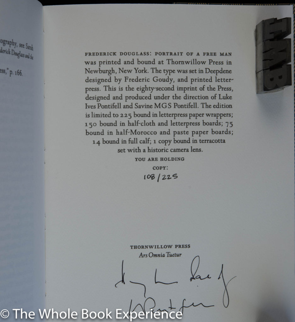 Portrait of a Free Man by Frederick Douglass; Published by Thornwillow Press