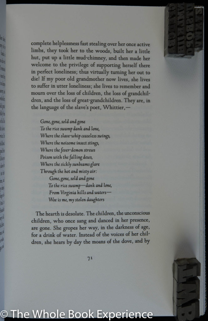 This edition is a bit different from the other Thornwillow titles I have in that there are no illustrations commissioned for and spread throughout the main text. But the section of photographic portraits that transition between Douglass’ and Gates’ texts are very interesting and “illustrate” the points made in the preface and essays. Note that this also meant I took less photographs of the book than I might have otherwise as there seemed less need. But I hope the reader gets a good feel for the book from what I have taken and what Thornwillow has achieved with this particular book. It’s a simply designed book fitting to the narrative. I’m very happy to upgrade my Easton Press edition to the Thornwillow; the former will probably make room on my shelves for another book at some point, although I might have to keep it just for the appendix.