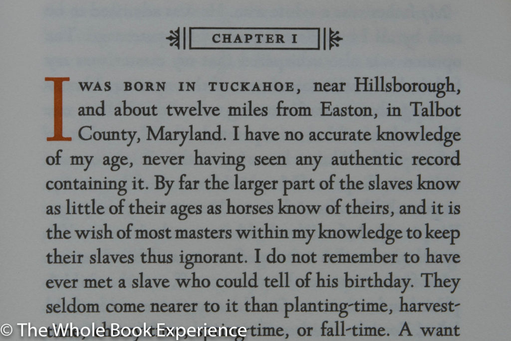 This is the second time I’ve read Douglass’ book, Narrative of the Life of Frederick Douglass. The first time was in the Easton Press edition from their series The Books That Changed the World. That was long ago enough that I don’t clearly remember any subtleties as they were overwhelmed by the gross horror of his enslaved experience. In the Thornwillow edition, the book is augmented by a preface and two essays by Henry Louis Gates, Jr., that really flesh out what Douglass was trying to do with his books, his oratory, and especially, his image. And his image is illustrated by a series of photographs from different periods of his freed life. Gates has this to say about Douglass and his savviness around how to “sell” abolition and chip away at racism: